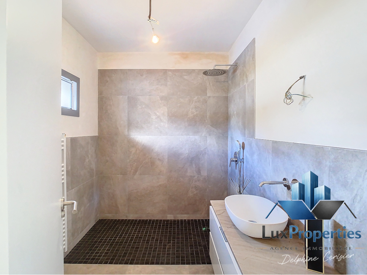 – 3 salles de bains (1 en bas et 2 en haut en suite) toutes avec chauffage au sol dans la douche